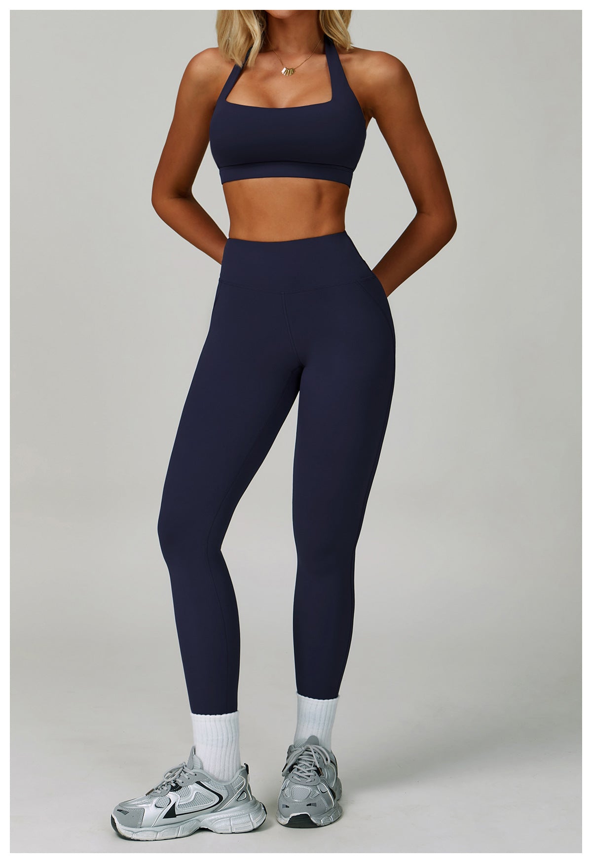A complete matching set: seamless bra + sculpted leggings.
